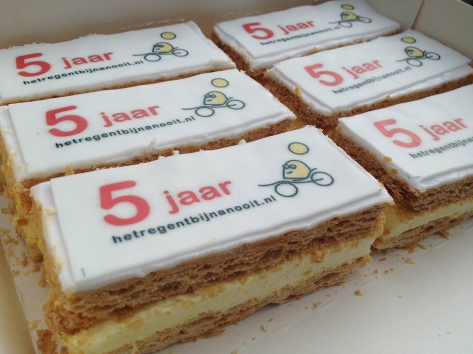 Feest! door bijnanooit | sep 2, 2013 | nieuws | 0 Reacties Vanmorgen ben ik hetregentbijnanooit-tompoezen op gaan halen. Geen feest zonder taart! 😉