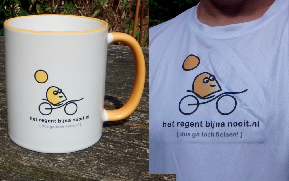 Ter gelegenheid van de achtste verjaardag van hetregentbijnanooit.nl kwam er vandaag een pakje binnen met een nieuw shirt, een mok, en wat buttons 🙂 “Merchandize” zou je kunnen zeggen.