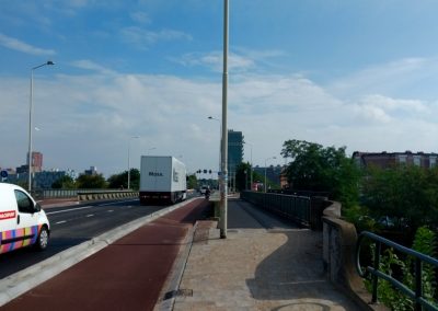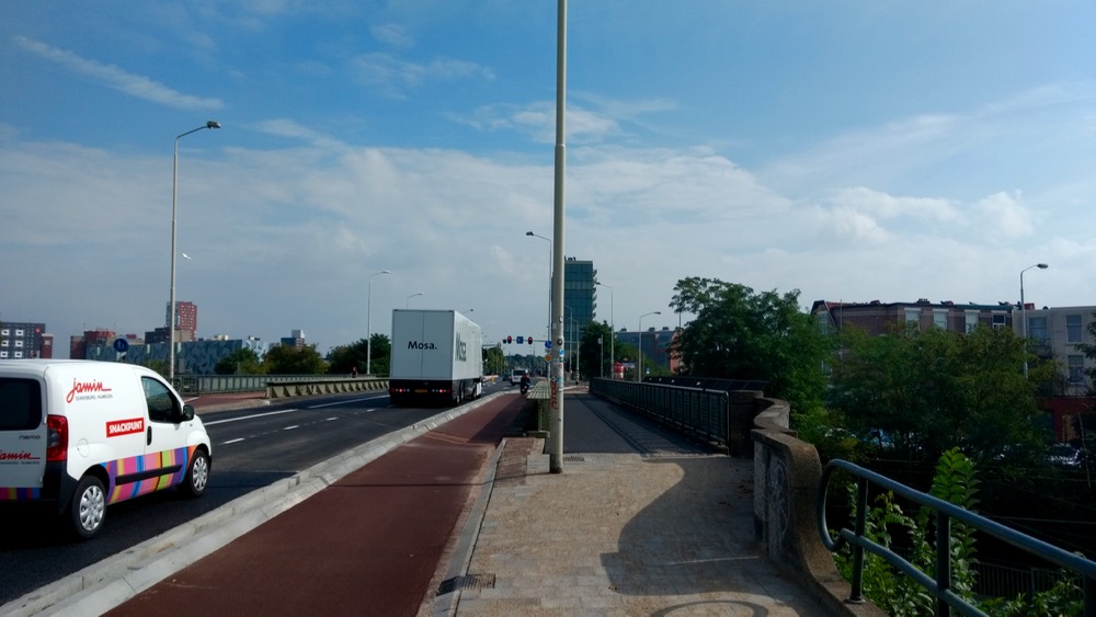 Ok de twee spoorbruggen was het tot nu toe dringen. Fietsers en voetgangers moesten daar vlak naast elkaar. Nu is er 1 auto-rijstrook minder staduitwaars en dat lever meer ruimte op voor de rest. Er komen nog hekken i.p.v. de wit-rode blokken, dan gaan ze de verkeerslichten tweaken, en dan is het klaar. Mooi werk!